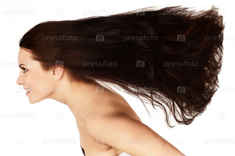 Красивая брюнетка с длинными летящими волосами