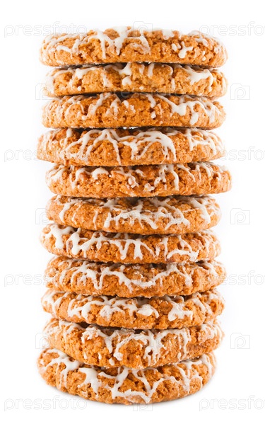 Стопка овсяного печенья с глазурью на белом фоне