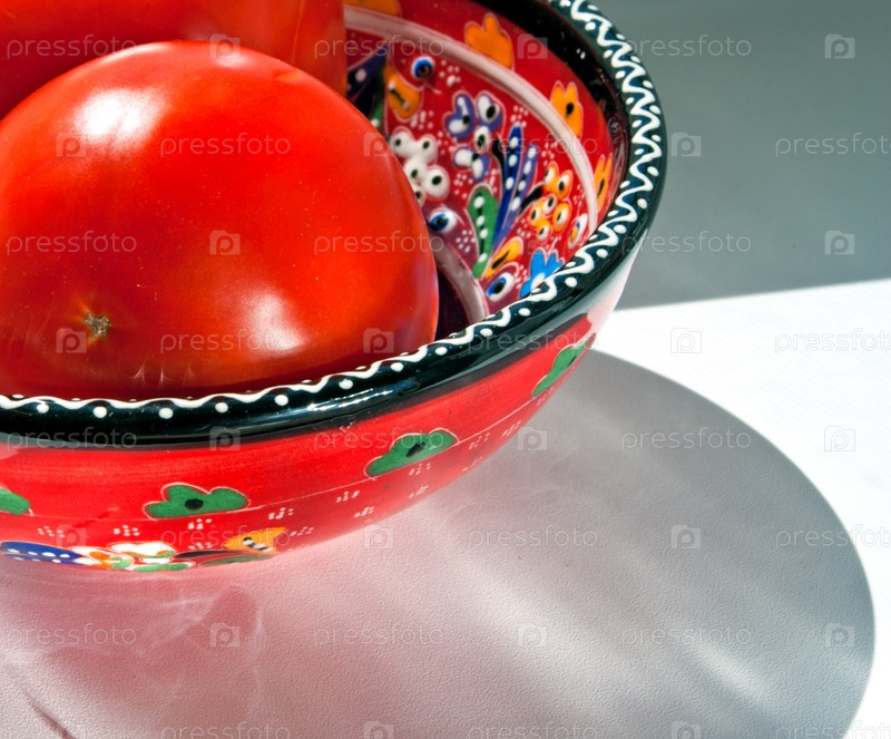 Красные помидоры в яркой чашке