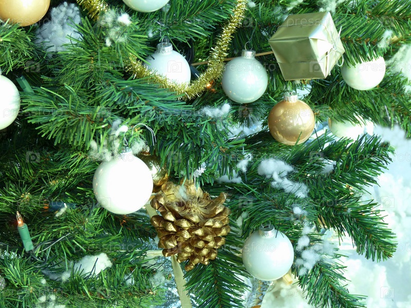 Рождественская елка украшена серебряными шарами