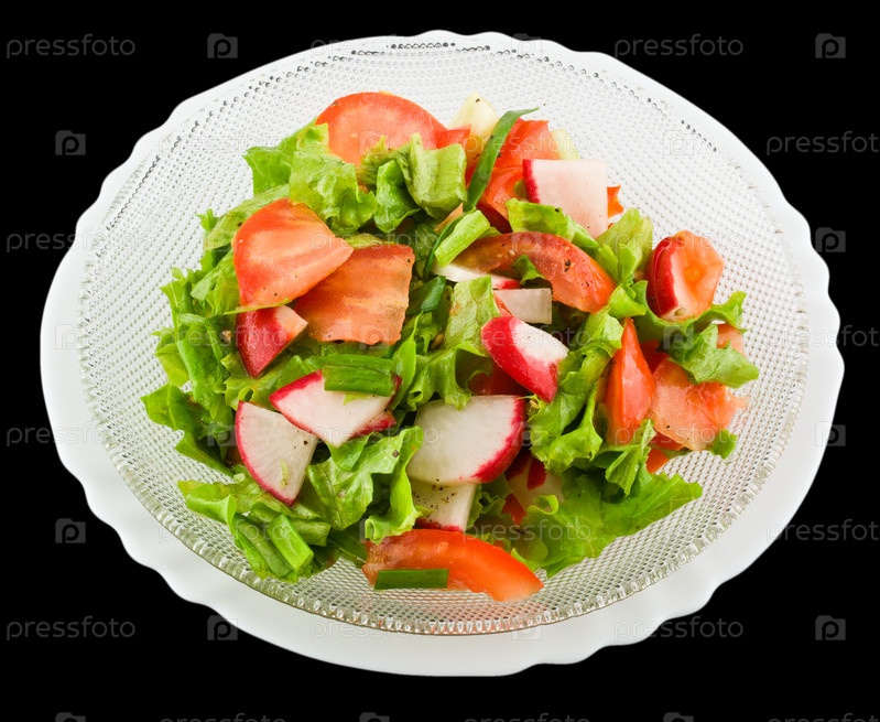 Салат из редиса с помидорами на черном фоне