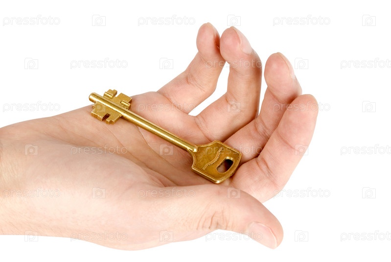 Золотой ключ в руке изолирован на белом