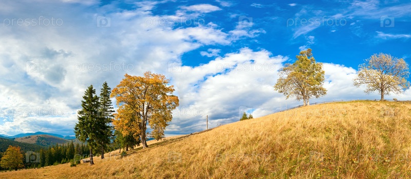 Осенний пейзаж с красивыми деревьями на склоне холма