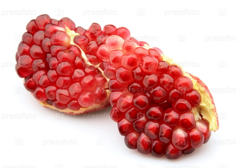 Куски граната крупным планом на белом фоне
