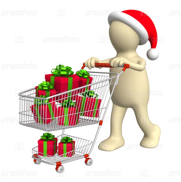 Человечек, покупающий новогодние подарки
