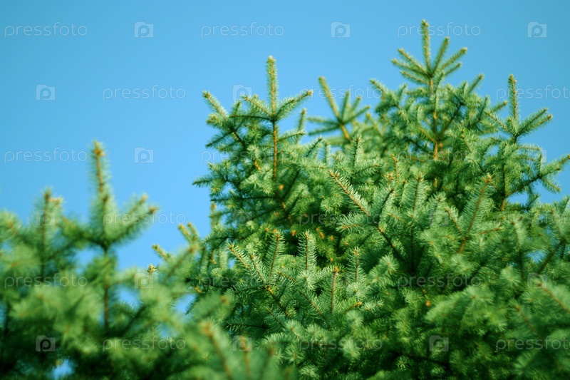 Ель на фоне голубого неба