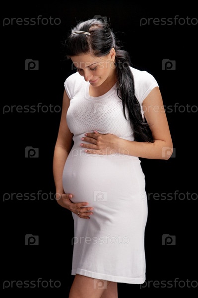 Беременная женщина на черном фоне
