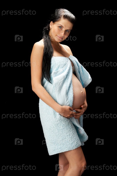 Беременная женщина на черном фоне