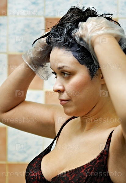 Женщина красит волосы