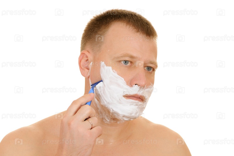 Мужчина бреет лицо