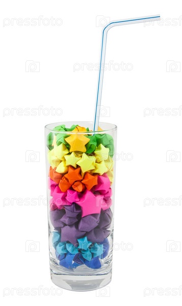 Разноцветные звезды в стакане на белом фоне