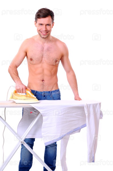 Мужчина гладит белье