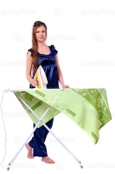 Девушка гладит белье