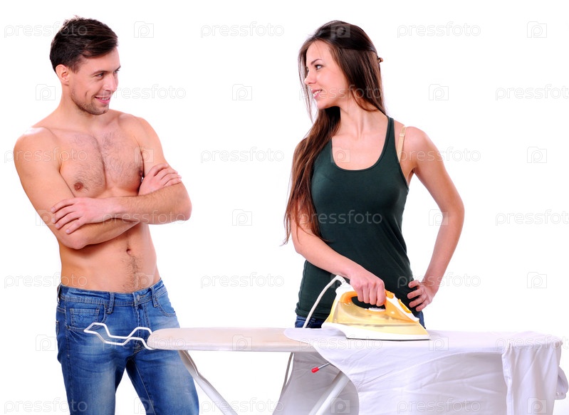 Женщина гладит белье