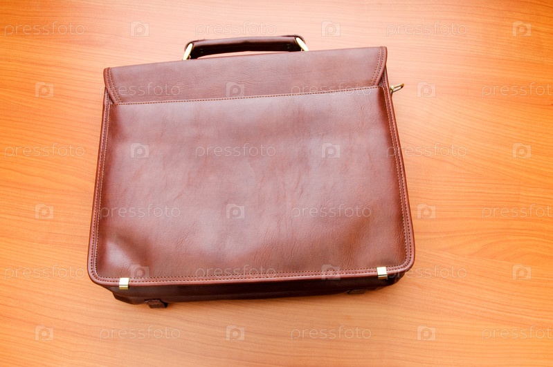 Кожаный портфель на деревянном столе