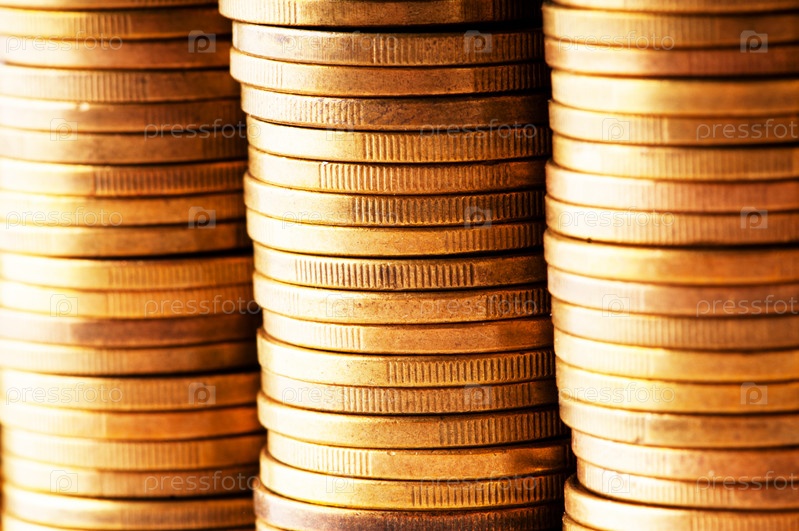 Стопки золотых монет крупным планом