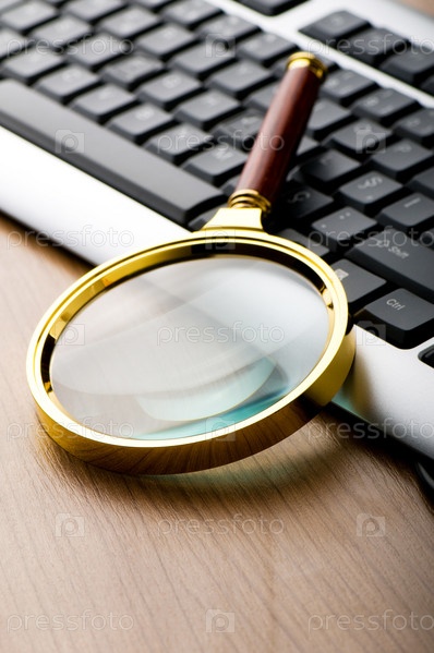 Концепция компьютерной безопасности с клавиатурой и увеличительным стеклом