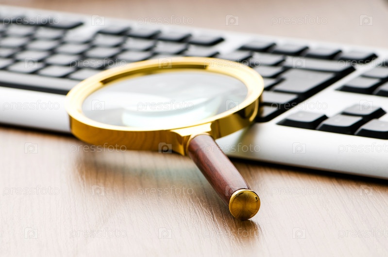 Концепция компьютерной безопасности с клавиатурой и увеличительным стеклом