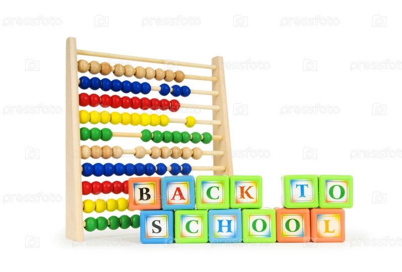 Счеты и кубики на белом фоне