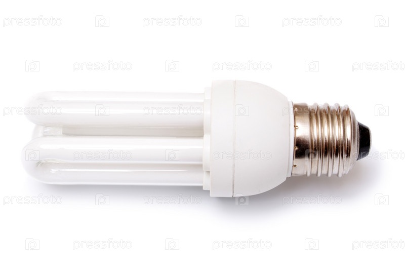 Электрическая энергосберегающая лампа на белом фоне
