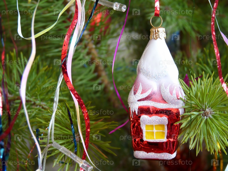 Рождественская елка украшена игрушками
