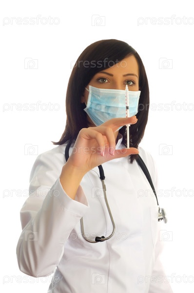 Женщина-доктор в защитной маске со шприцом