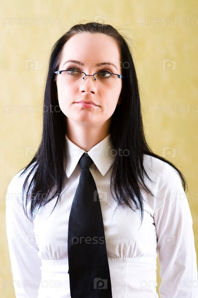 Брюнетка в очках и с галстуком
