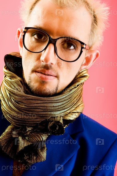 Портрет мужчины в очках на розовом фоне