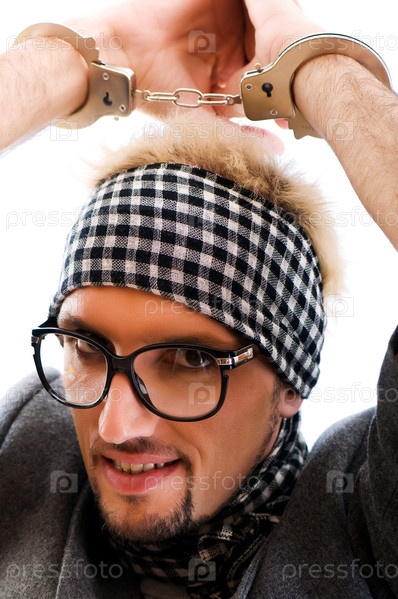 Молодой человек в очках и наручниках