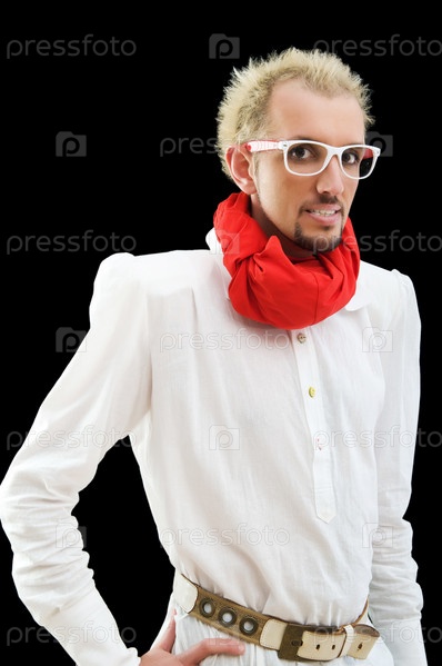 Молодой человек в очках на черном фоне