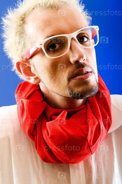 Молодой человек с красным шарфом на цветном фоне