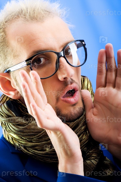 Молодой человек в очках на цветном фоне