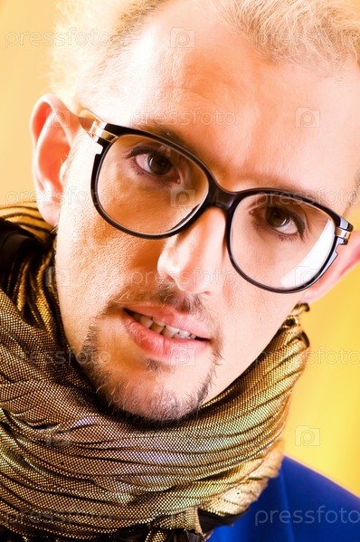 Молодой человек в очках на цветном фоне