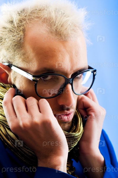 Молодой человек в очках на цветном фоне