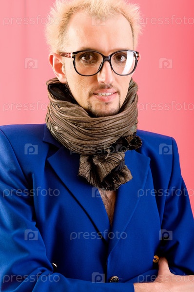Молодой человек в очках на цветном фоне