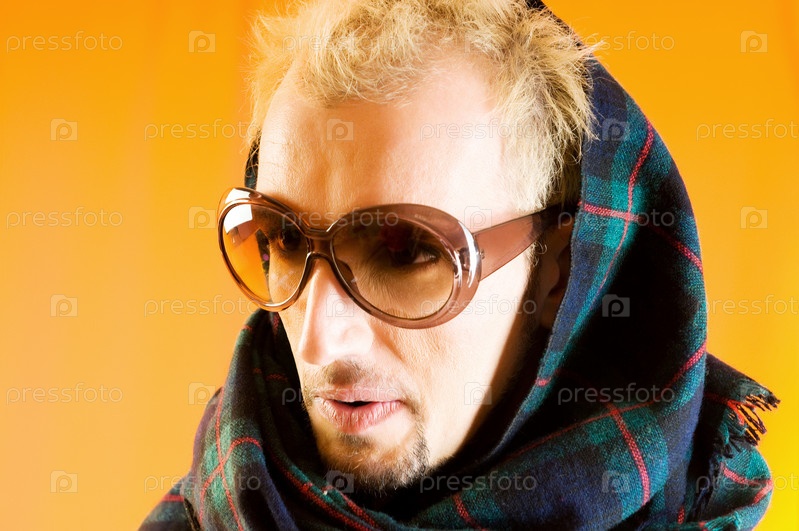 Молодой человек в очках на цветном фоне