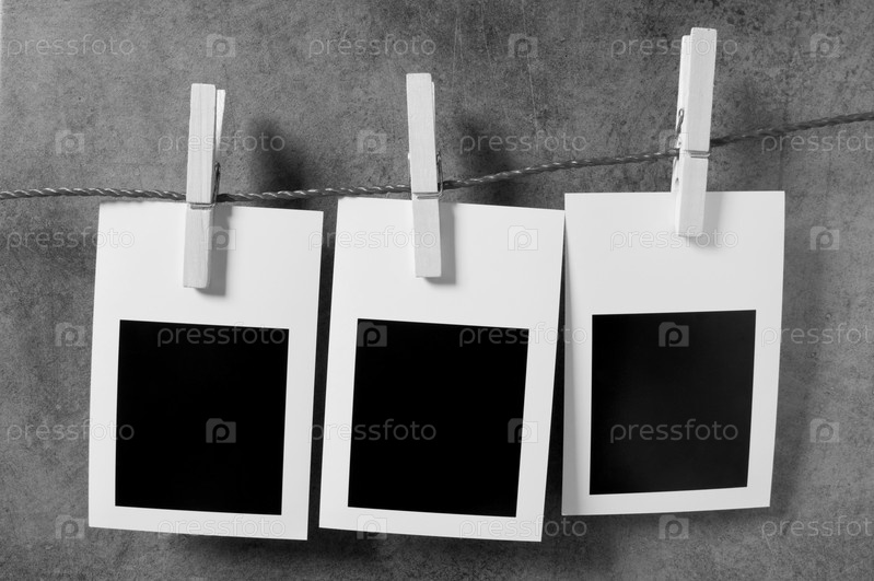 Пустые рамки для фотографий прикреплены к веревке бельевыми прищепками
