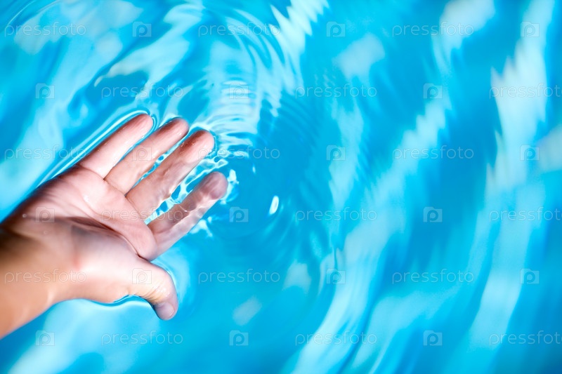 Рука в прозрачной голубой воде