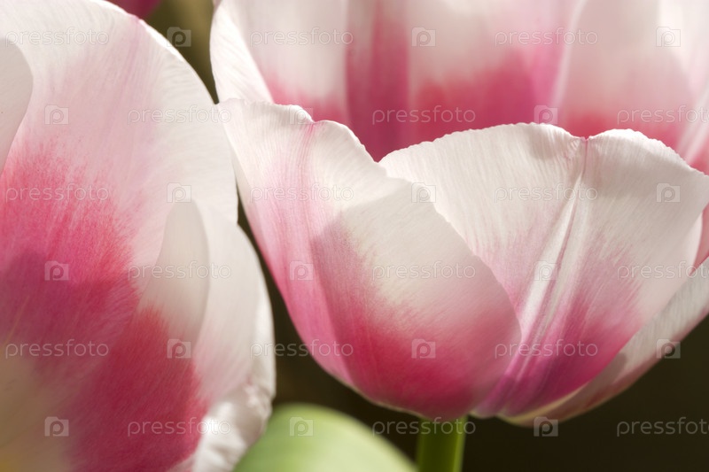 Бело-розовые тюльпаны крупным планом