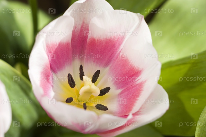 Бело-розовый тюльпан крупным планом