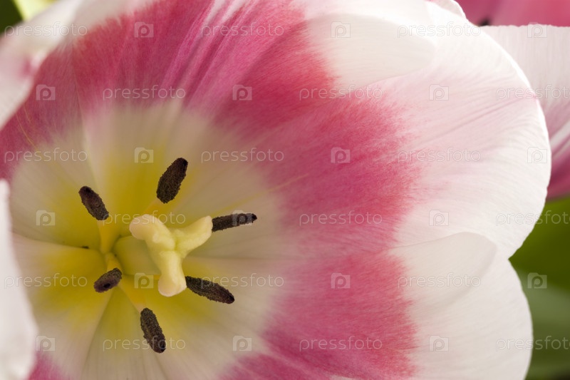 Бело-розовый тюльпан крупным планом