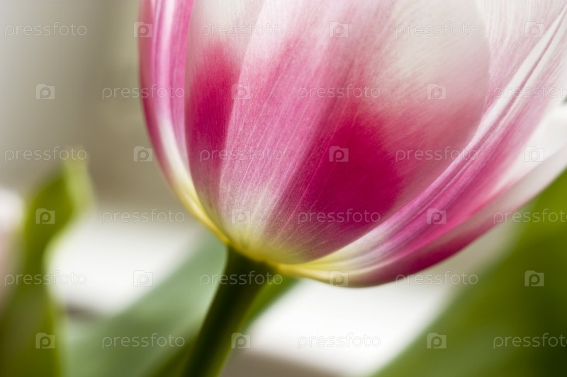 Бело-розовый тюльпан крупным планом