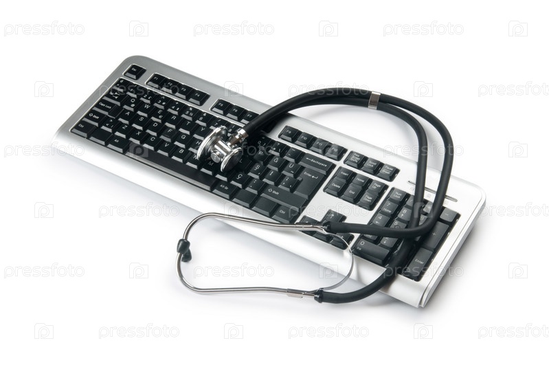 Концепция цифровой безопасности со стетоскопом и клавиатурой