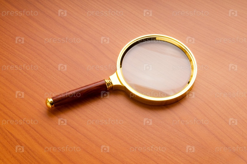 Лупа с деревянной ручкой на плоской поверхности