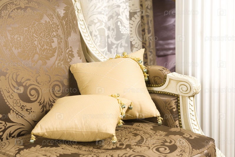 Две подушки, лежащие на красивом диване