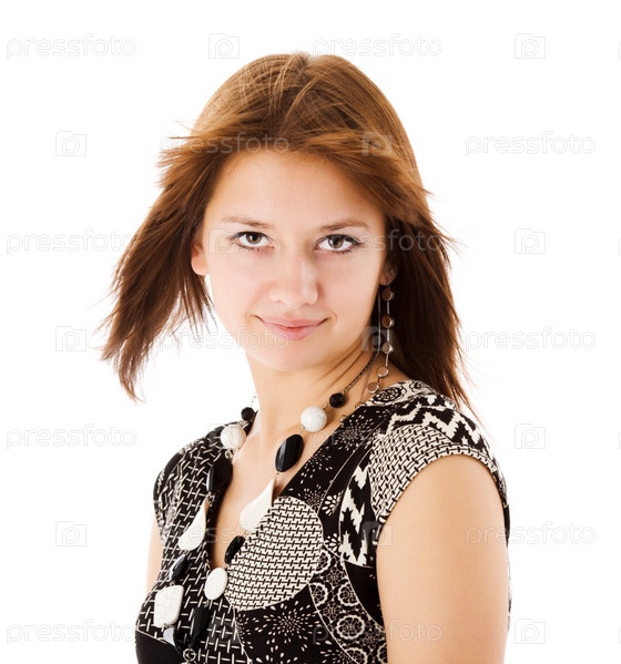 Портрет молодой счастливой девушки на белом фоне