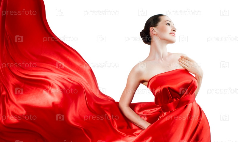 Красивая молодая женщина в красном длинном платье