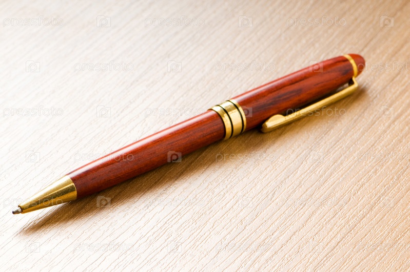 Коричневая шариковая ручка на фоне деревянного стола