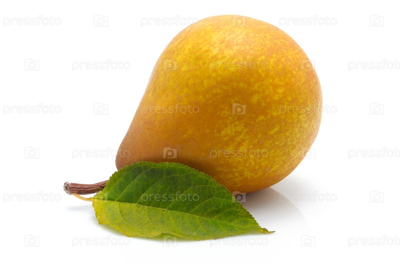 Желтая груша с зеленым листом