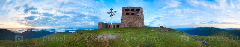 Христианский крест у руин в Карпатах